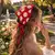 Kırmızı Papatyalı Örgü Üçgen Bandana